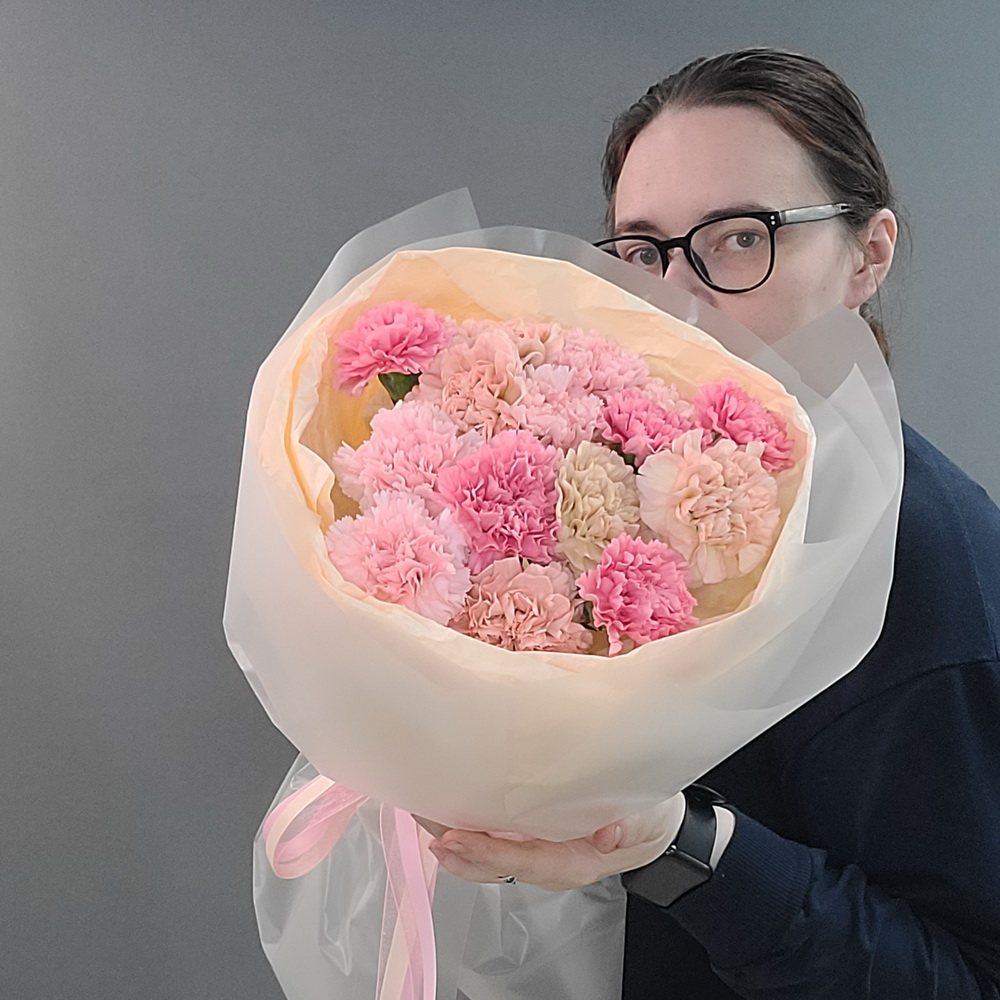 Букет Гармония Говорите о чувствах языком цветов!Этот букет из 15 диантусов в умиротворяющих постельных тонах — воплощение изящной нежности и теплой заботы. Идеально для: ✨Того, кого хочется окружить заботой ✨Романтичного свидания ✨Создания уютного настроения Подарите облако нежности в нежной упаковке! ✨