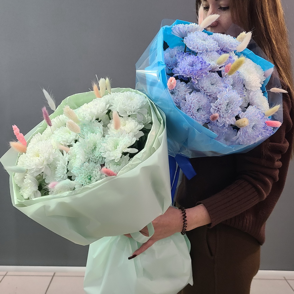 Букет Разноцветный Для тех,кто ценит тонкую красоту и элегантность! Этот букет — как шёпот в мире ярких красок. ✨ Кружевная хризантема — облако нежности и уюта. Символ радости и долголетия. ✨Лагурус (Зайцехвост) — лёгкость и трогательность. Его пушистые колоски добавляют текстуры и воздушности. Идеален для создания самого тёплого и искреннего настроения. Это не громкое признание, а тихая, уверенная нежность.