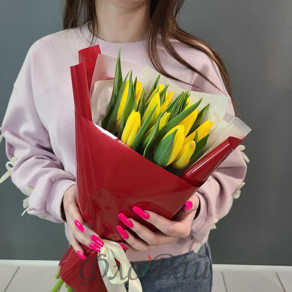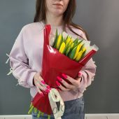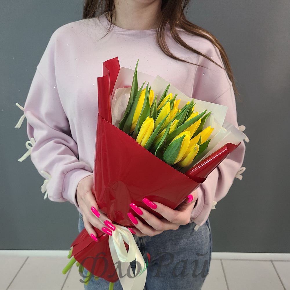 Букет из 11 тюльпанов в упаковке. Цвета в наличии разные.
