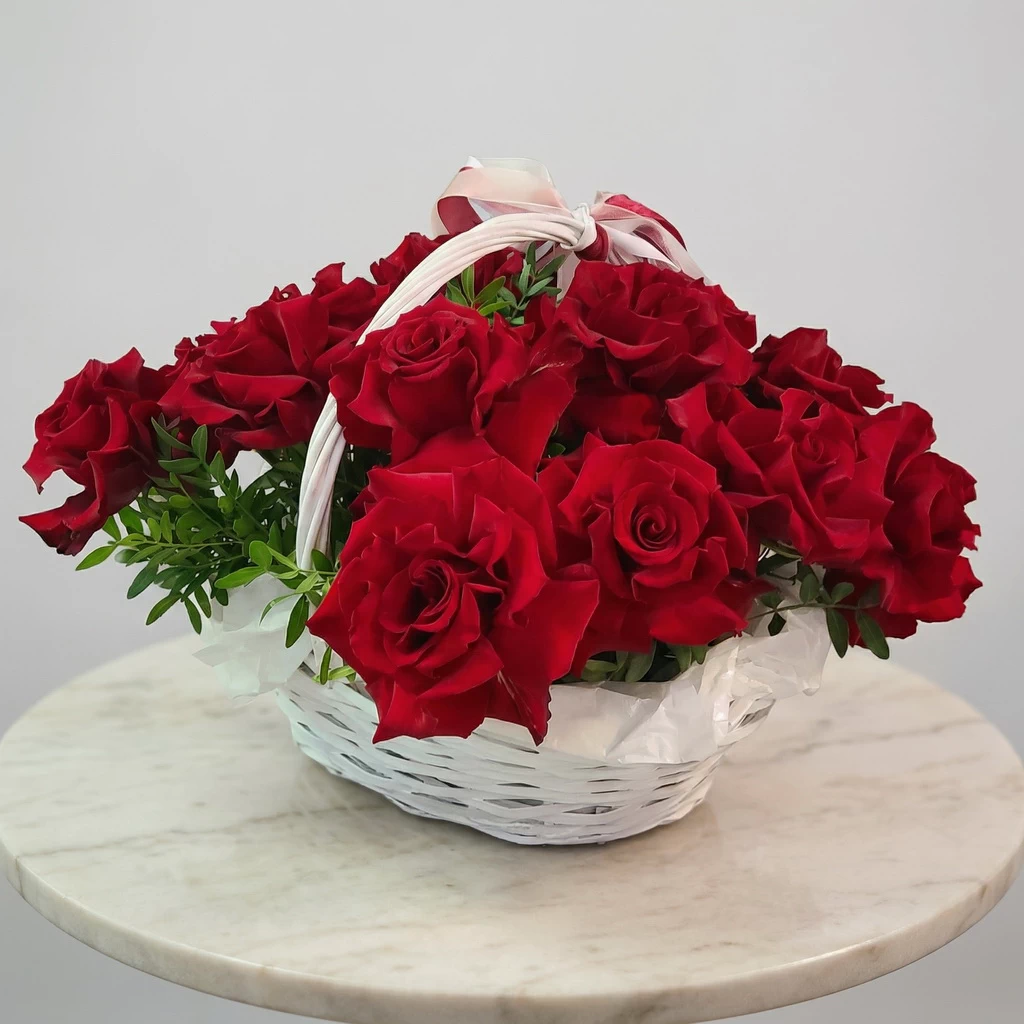 Плетеная корзина придаёт букету особую основательность и презентабельность, делая его самостоятельным, завершённым подарком, который не требует вазы.