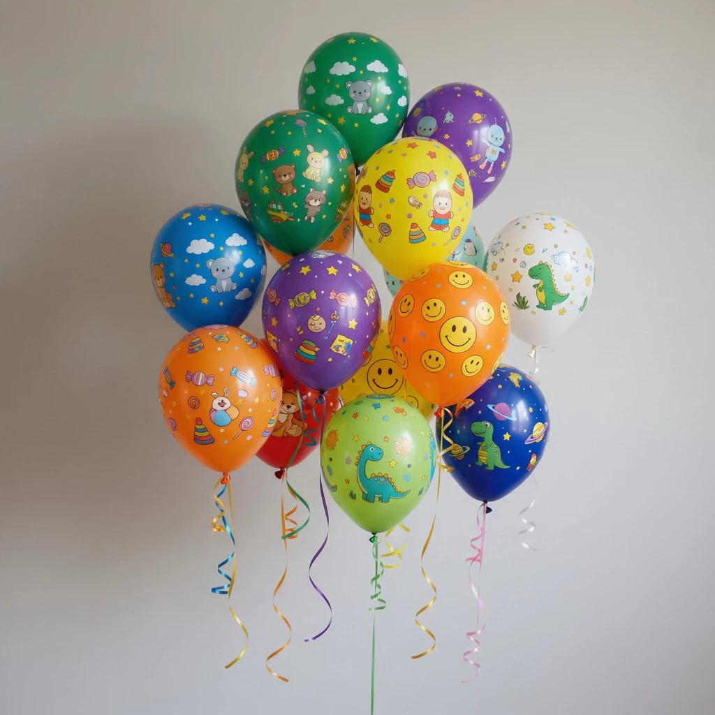 Шары с рисунком — это не просто украшение, это маленькая история, которая рассказывает о вашем празднике. Яркие надписи, тематические изображения, персонажи и поздравления — каждый шар становится частью большого торжества. А когда они собраны в пышный фонтан на гелии, это зрелище завораживает и детей, и взрослых.